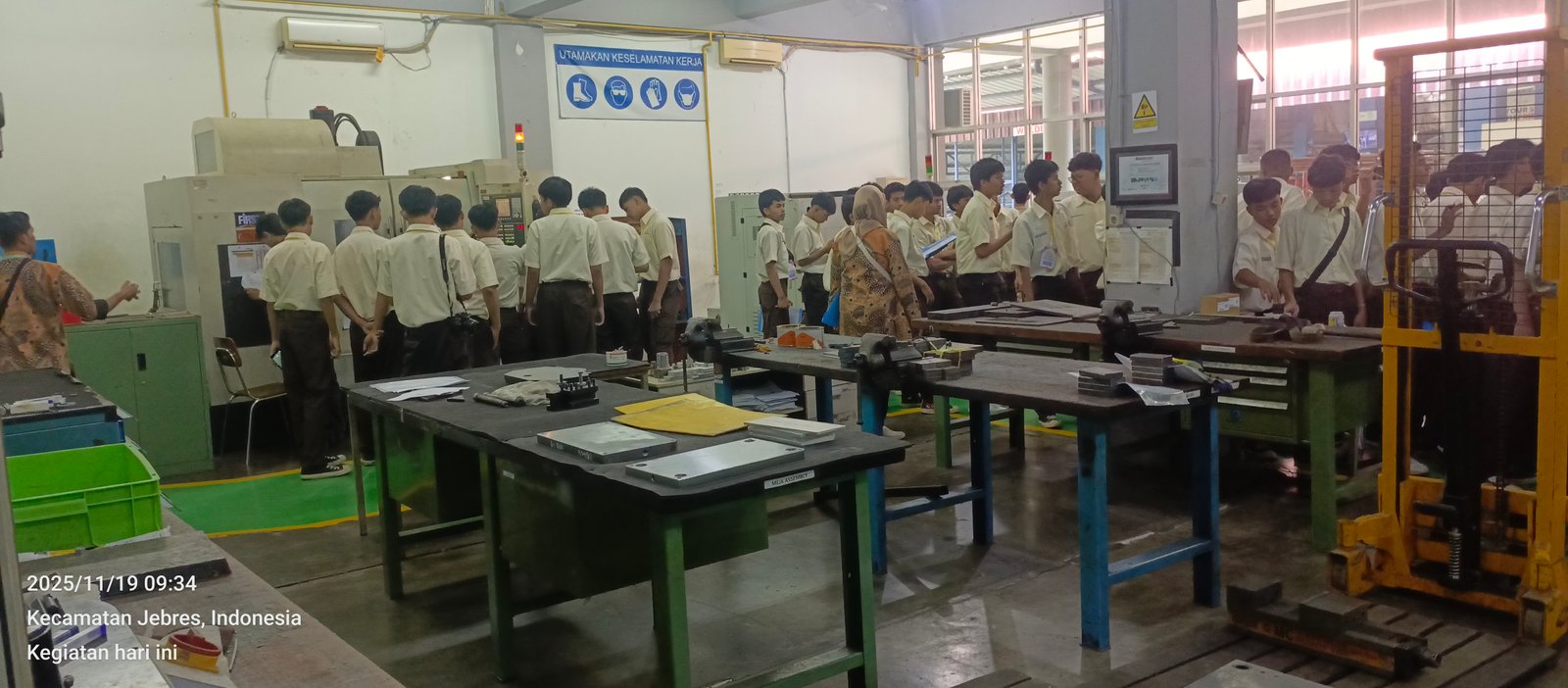 Jurusan TP (Teknik Pemesinan): Siswa TP diarahkan menuju area workshop teknis. Mereka melihat langsung fasilitas permesinan dan area pelatihan pengelasan (welding), termasuk pengenalan teknologi Underwater Wet Welding (las bawah air) yang menjadi kompetensi unggulan di Solo Techno Park.