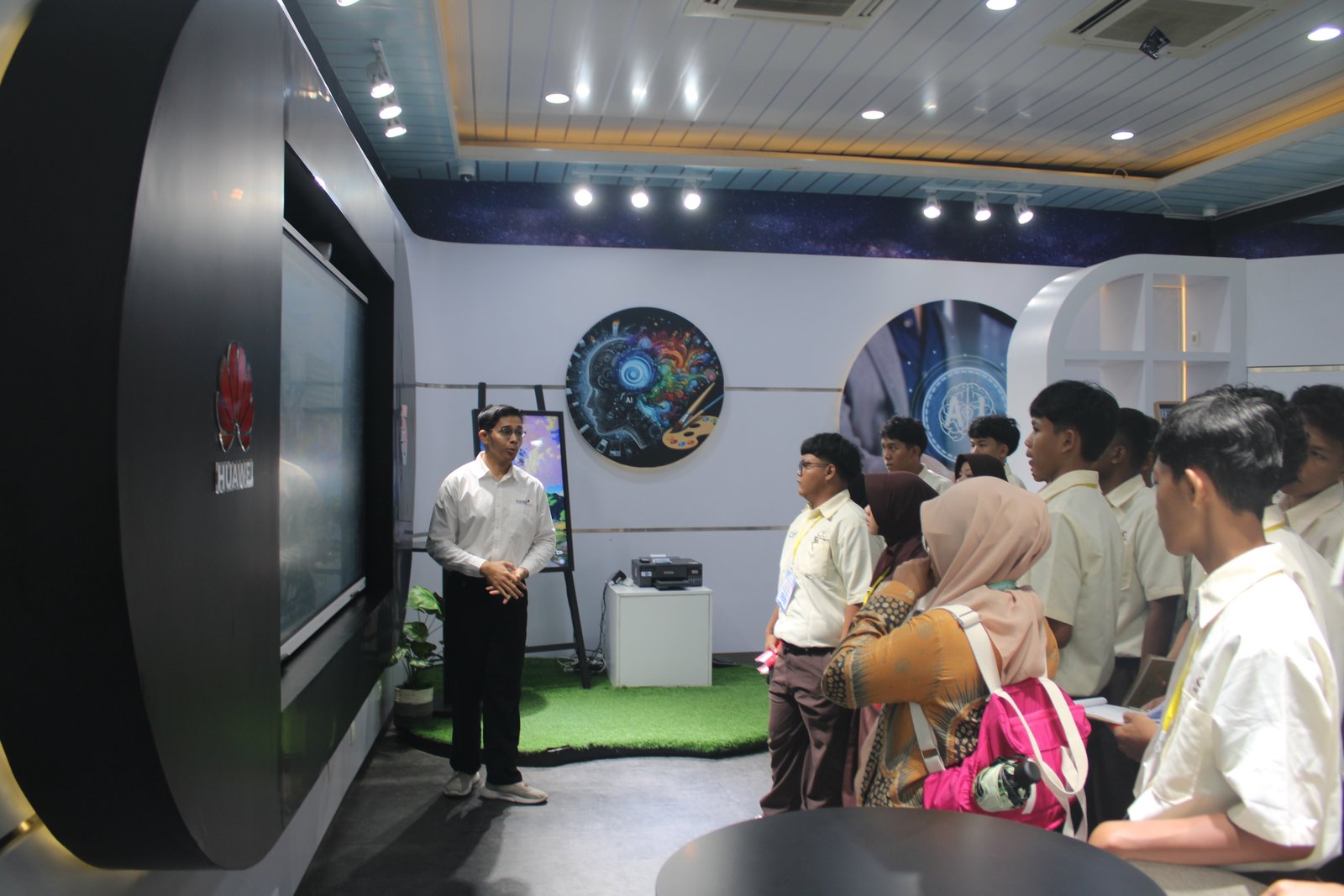 Kepala Program Keahlian berharap pengalaman melihat langsung fasilitas podcast, ruang kerja modern, dan alat peraga sains ini dapat memicu kreativitas siswa untuk terus berkarya di bidangnya masing-masing.